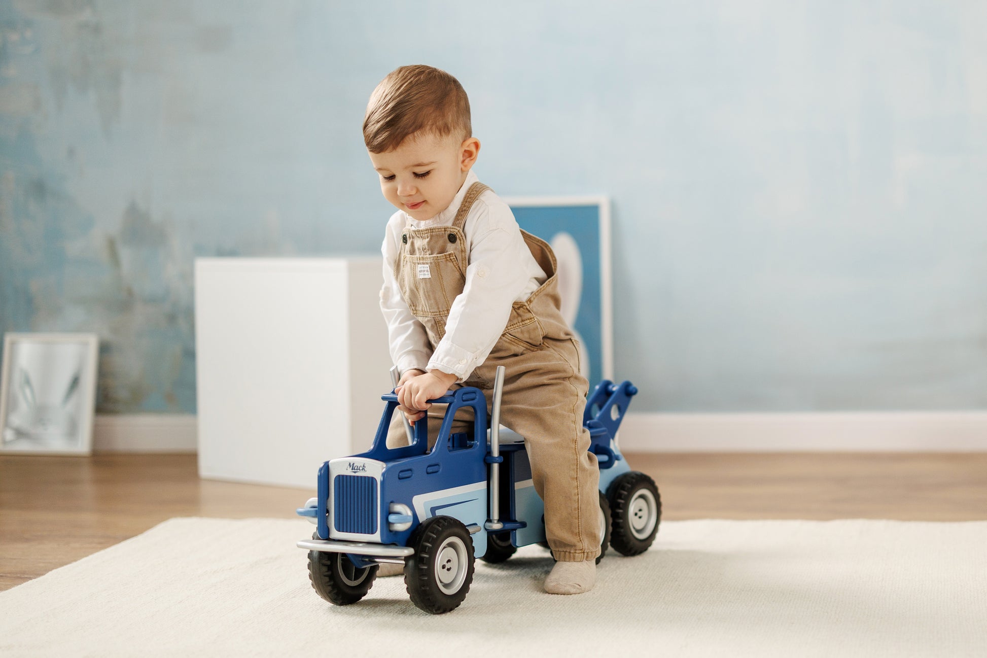 Give your child a fun and educational play experience with the Mack Truck in Dark Blue from Moovertoys. This durable truck is perfect for both indoor and outdoor play and can transport everything from toys to sand. It is made of FSC-certified wood and painted with non-toxic paints, ensuring that it is both safe for children and gentle on the environment. The dark blue color gives the truck a stylish look that children will love.